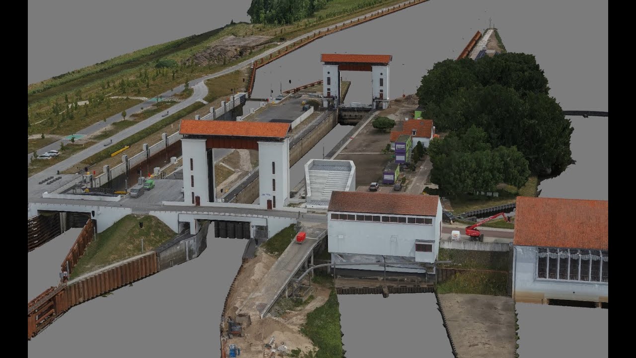 Na voltooiing van de indrukwekkende werkzaamheden aan het sluizencomplex diende er een update te worden doorgevoerd aan het DTB. Dit met als doel dat ook de nieuwe situatie haarfijn is vastgelegd in dit zeer waardevolle bronbestand. In samenwerking met 2bprojects voerde GeoZICHT in de zomer van 2021 tientallen vluchten uit boven het ruim 30 hectare grote complex. In totaal werden ruim 15.000 hoge resolutie nadir én oblique beelden ingewonnen welke naderhand middels fotogrammetrie zijn uitgewerkt tot een 2D orthofotomozaïek, een 2.5D terreinmodel en zowel een 3D puntenwolk als een 3D mesh-model.